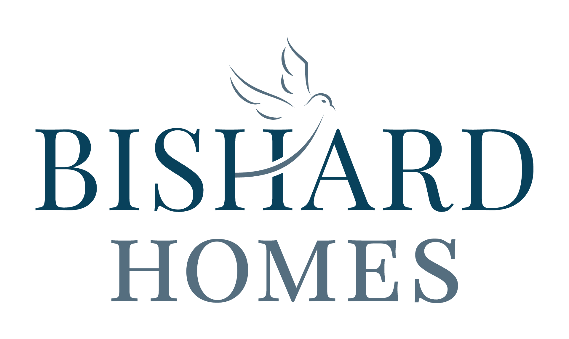 There were several points where the former logo was not working. The first being that there was only one version that did not adapt to horizontal spaces nor scale down well for avatar use cases. I sought to remedy this by creating a responsive logo that worked across multiple screen widths, devices and platforms abbreviating the logo as it scaled down to preserve readability. The second problem was that the logo was visually disorienting with a depiction of a large dove on the upper left that made the logo feel visually off centered. The illustration resembled a swan more than a dove so I redrew the graphic to a more fluid and agile dove gracefully in flight as opposed to a rigid and highly abstracted “dove”. I drew inspiration from the coastal region for the color palette. For the word mark, I tested a variety of luxury modern serif fonts that were elegant without being too delicate. The brand needed to feel trustworthy and sturdy like the homes the company built without losing that essential sense of artistic detail that set Bishard Homes apart from other home builders.